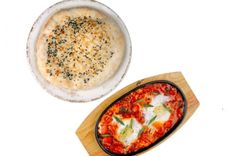 340/190 г • Шакшука, яйцо, лук. Лепешка с кунжутом