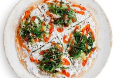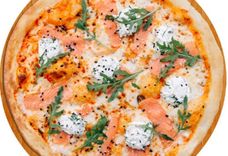 440 г • Основа для пиццы, итальянский соус, сыр, форель слабосоленая, творожный сыр, кунжут, руккола