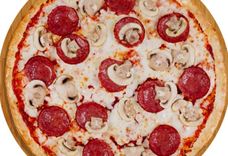 340 г • Основа для пиццы, соус томатный острый, сыр, салями, шампиньоны