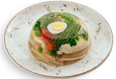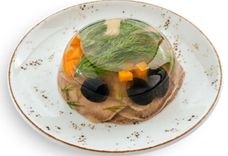 230 г • Бульон из птицы, язык отварной, морковь, маслины, зелень