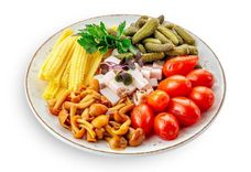 402 г • Грудинка соленая, корнишоны, маринованные опята, черри, кукуруза в початках, зелень