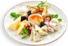 322 г • Сыр твёрдый, камамбер, сыр мягкий с голубой плесенью, моцарелла, виноград, мёд, миндаль, чернослив, грецкий орех, хлебные палочки