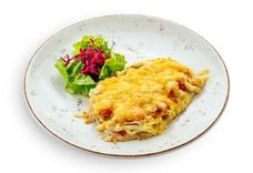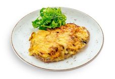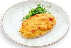 240 г • Филе хека, картофель, шампиньоны, помидоры, сыр