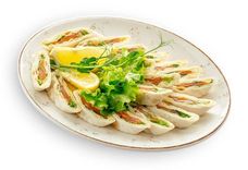 222 г • Лаваш, плавленый сыр, филе форели, лимон, зелень